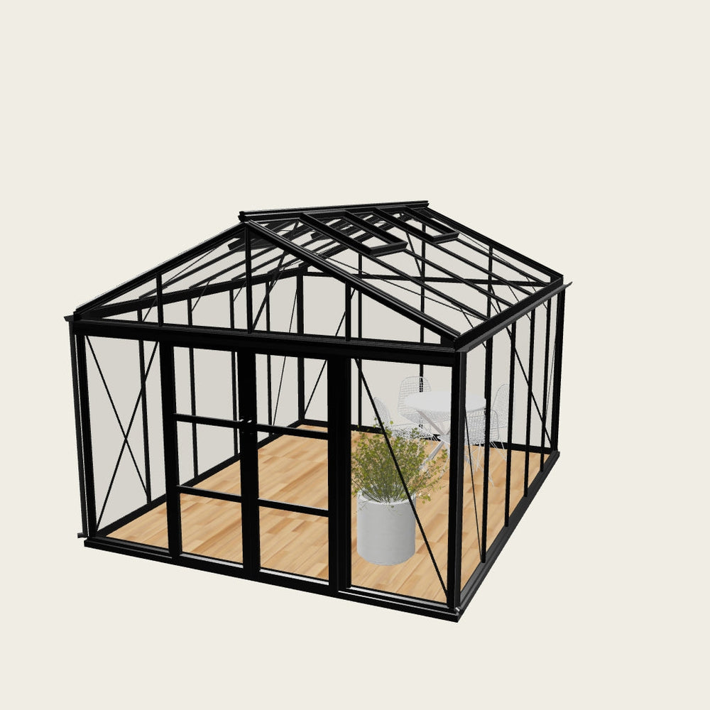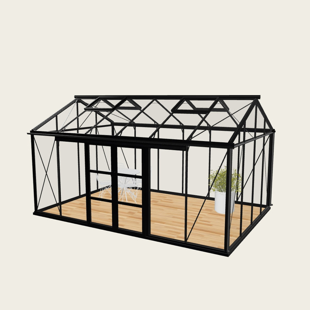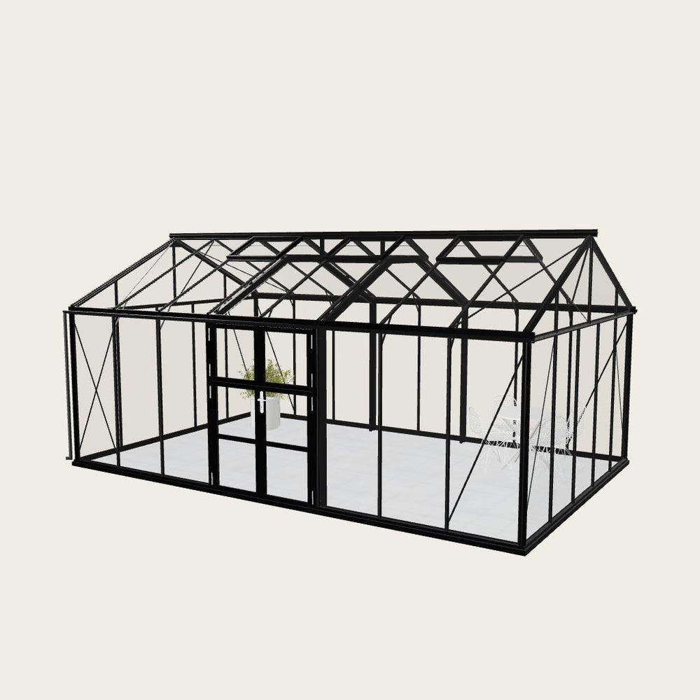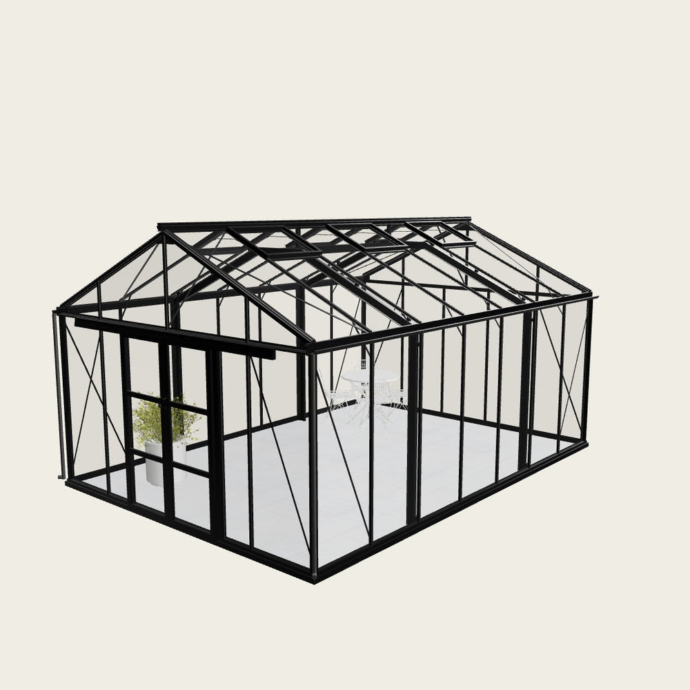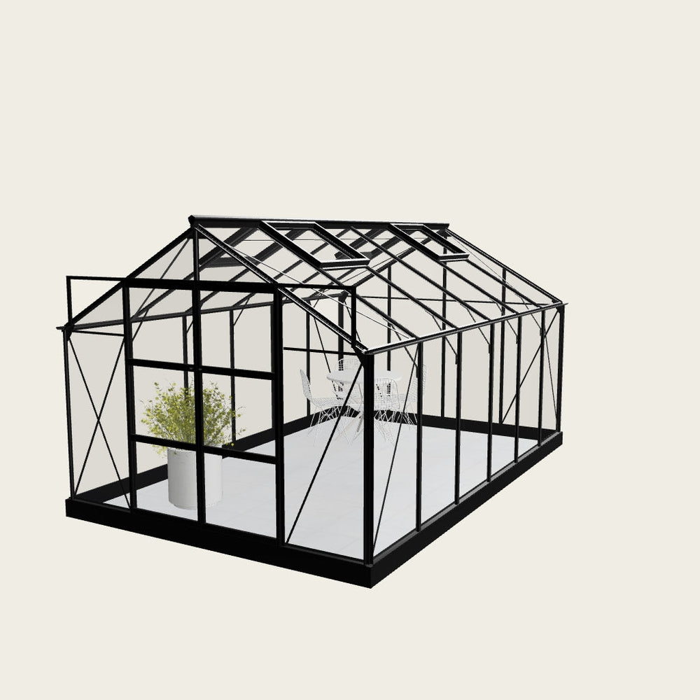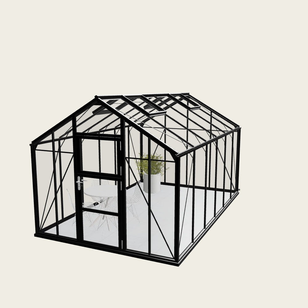 I drivhusseriene SOLID, DELUXE og ROYALE er alle taksperrer, hjørneprofiler og møneprofiler laget som kraftige hule profiler og ikke enkle vinkel- eller T-profiler. I tillegg leveres alle modeller med herdet glass.