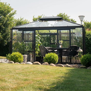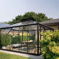 Royale Cube Drivhus er et stilfullt og funksjonelt drivhus som tilbyr både moderne estetikk og praktisk bruk. Det er designet for å være et vakkert og brukbart rom i hagen din, som du kan nyte året rundt – enten du bruker det til planter, sosiale sammenkomster eller som et fristed for avslapning.