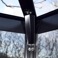 De kraftige aluminiumsprofilene og det unike festesystemet sikrer at glass eller polykarbonatplater sitter sikkert fast, selv under kraftige stormer. Denne konstruksjonen, kombinert med rustfrie stålbolter, gir lang holdbarhet og stabilitet, slik at du kan glede deg over drivhuset ditt i mange år fremover.