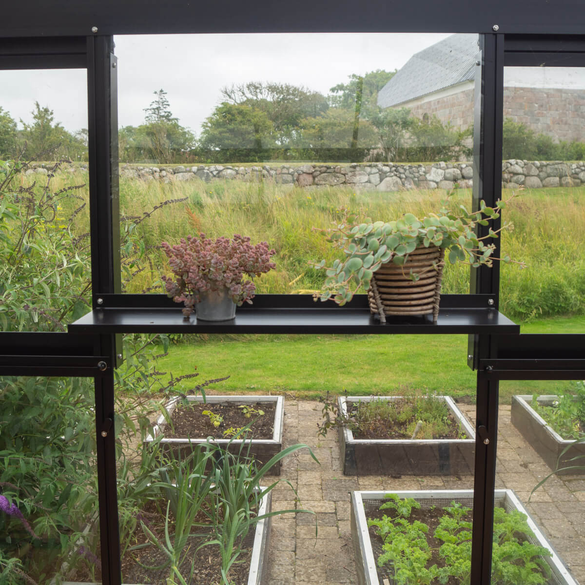 Hyllene forsterker og avstiver også drivhuset!