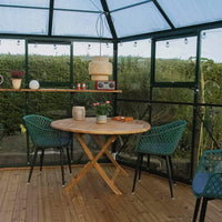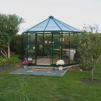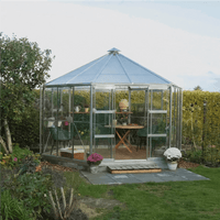 Det perfekte drivhus! Den gode sidehøyden på 188 cm gjør at Solid oppleves som svært romslig og lar deg utnytte plassen helt ut i sidene. Lysthus 10 Solid har en sekskantet form med en diameter på hele 396 cm mellom spissene i sekskanten.