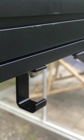 Hyllene har spor langs kantene og på undersiden som kan benyttes til vårt egenutviklede kroksystem! Her kan du feste kroker til hageredskaper, hansker, forkle, eller til oppheng av ampler eller oppbinding av tomat og agurkplanter!